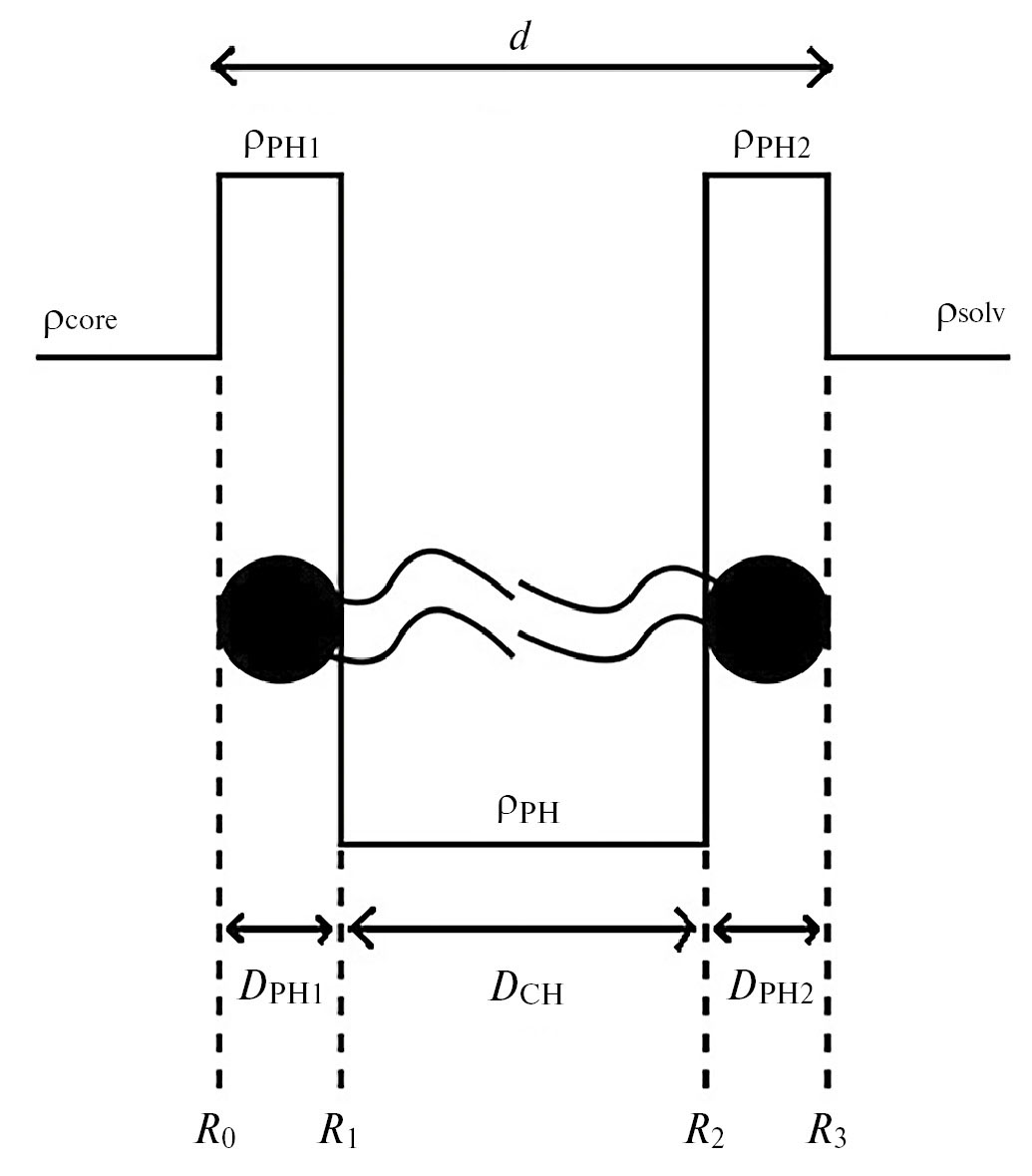 Примечание. Плотности длин рассеяния для раствора и области углеводородных хвостов рассчитаны вручную и были зафиксированы: ρCH = 7.8 × 10–6 Å–2.