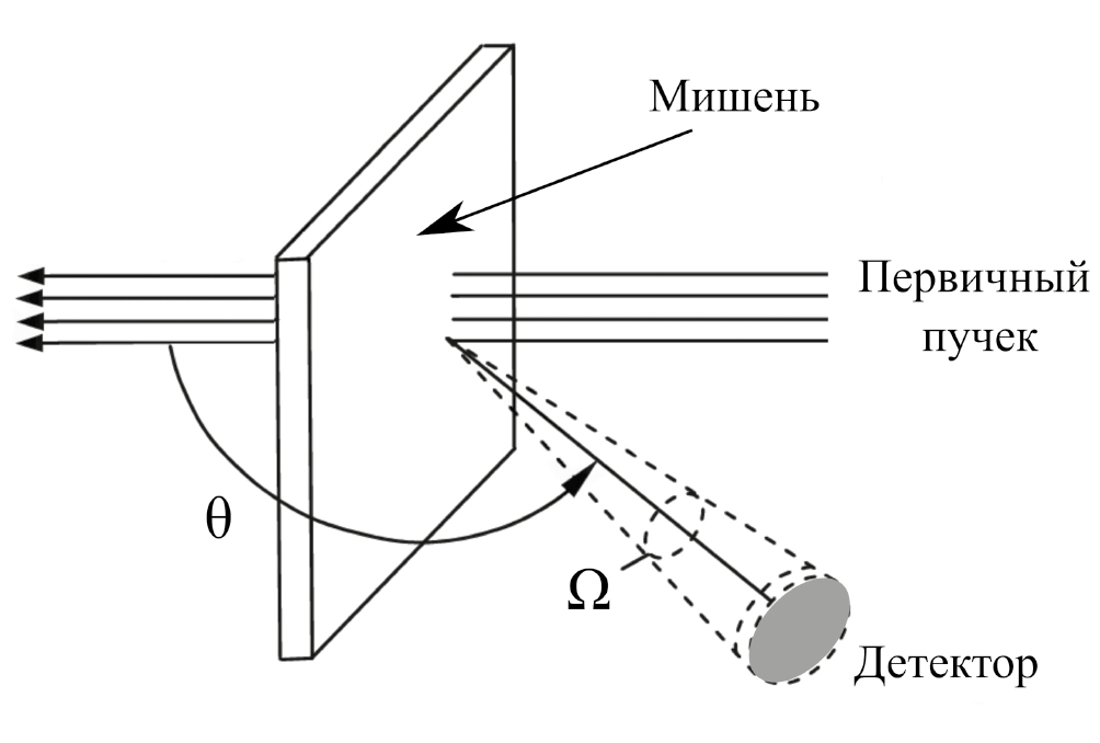 Рис. 2. Схема рассеяния нормально падающего пучка He+ на ТТЛИА.