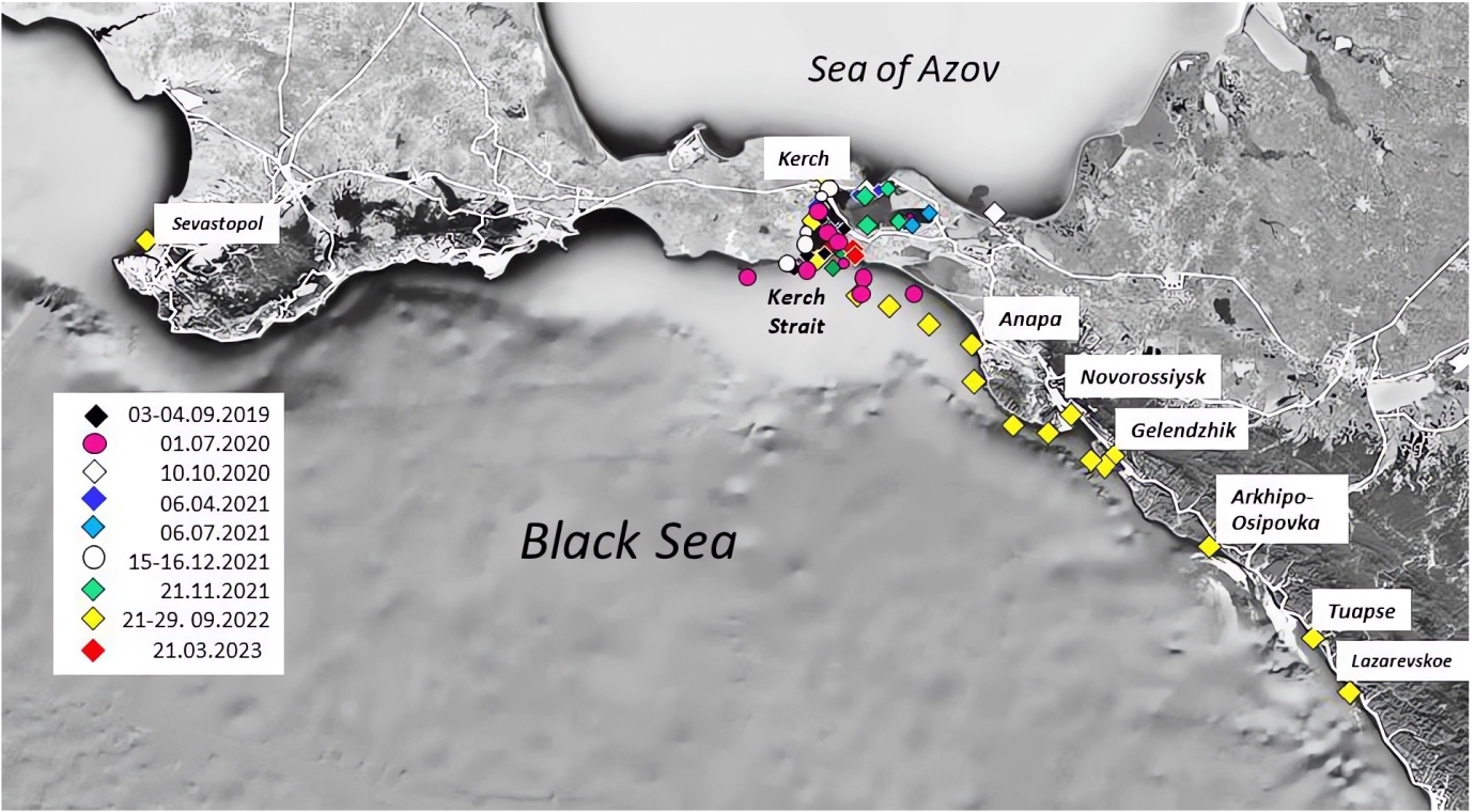 - Zavialov, P.O., Zavialov, I.B., Izhitskiy, A.S., Izhitskaya, E.S., Konovalov, B.V., Krementskiy, V.V., Nemirovskaya, I.A. and Chasovnikov, V.K., 2022. Assessment of Pollution of the Kerch Strait and Adjacent Black Sea Area Based on Field Measurements of 2019-2020. Oceanology, 62(2), pp. 162-170. doi: 10.1134/S0001437022020175