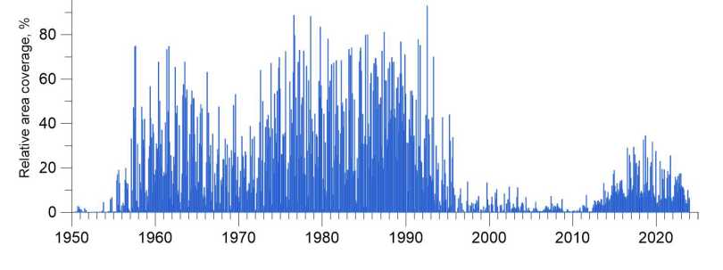 The calculation of deviations of current values of hydrometeorological elements from climatic values remains the traditional, fundamental approach in the vast set of climate research methods. In the case of oceanographic characteristics that are unevenly distributed in time and space, the process of obtaining statistically reliable climate values is a more uncertain task than it is for long-term observation series at stationary meteorological stations or for remote sensing data on a regular basis.