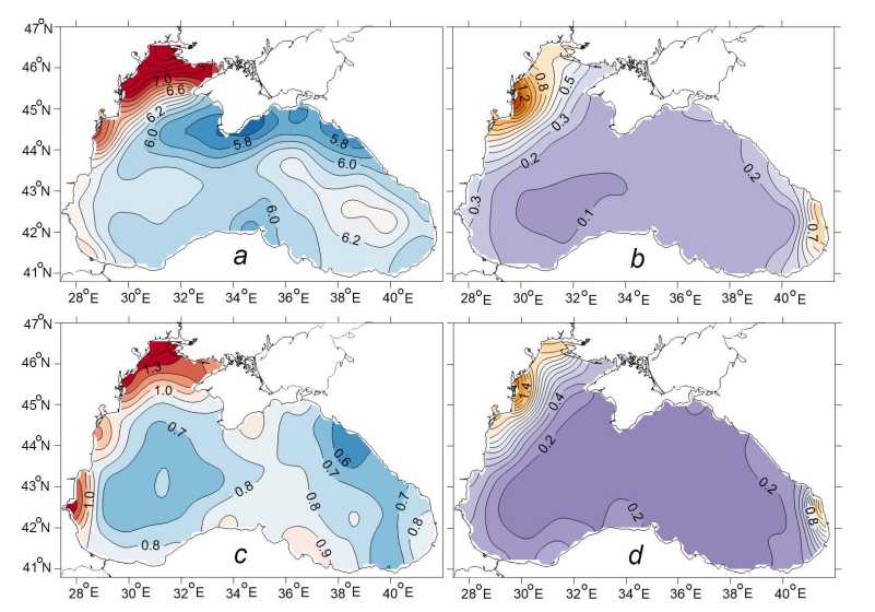 Also, since 2015, a stable excess of the interannual SD (0.2 °C) has been observed at the 100 m horizon. Below the 150 m depth, a stable long-term water temperature rise has been observed from the very beginning of oceanographic observations in the Black Sea. The highest seasonal increase in temperature in the surface layers occurs in summer-autumn period when the warming rate is 1.5‒2 times higher than in winter-spring one (Fig. 7, a).
