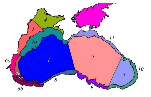 Fig.1. Map of Black Sea sub-regions defined by hydrodynamic features [33]