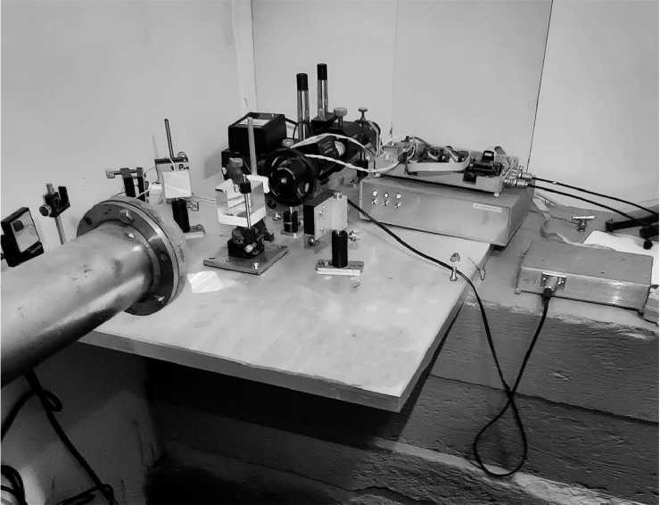 The laser nanobarograph [11] was developed to study the relationships between processes occurring within the atmosphere, lithosphere and hydrosphere. It uses a block of aneroid boxes, similar to that used in traditional pointer barometric instruments, as a sensor for measuring atmospheric pressure. To increase the sensitivity when registering the movement of the unfixed end of the aneroid block, laser interference techniques are used. They are based on an equal-arm Michelson interferometer with a measuring (and “reference”) arm length of 20 cm. A frequency-stabilized helium-neon laser, manufactured by Melles Griot, is used as the radiation source, thereby ensuring frequency stability in the ninth decimal place. Figure 3 illustrates the general appearance of the laser nanobarograph. Its basic technical specifications include an operational frequency range of 0 (conditionally) to 1000 Hz and an accuracy of 1 mPa in measuring atmospheric pressure variations.