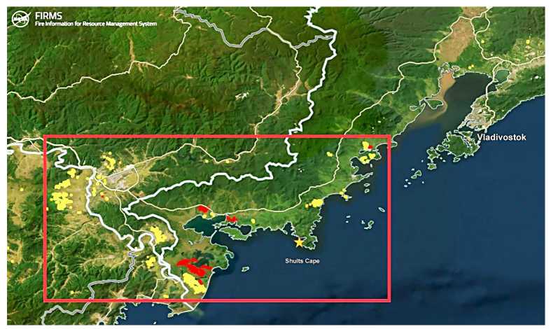 The spring period is characterized by the transition to the warm season with positive daytime temperatures and often negative nighttime temperatures. In addition, an important factor influencing the level of concentrations is a relatively dry winter with little snow, which, together with a constant flow of solar radiation and warming of the soil layer, causes frequent occurrence of fire-hazardous periods with the development of forest fires and grass fires in Primorsky Krai. March 2024 was extremely fire hazardous, especially for the southern part of the Khasansky District (Fig. 10).