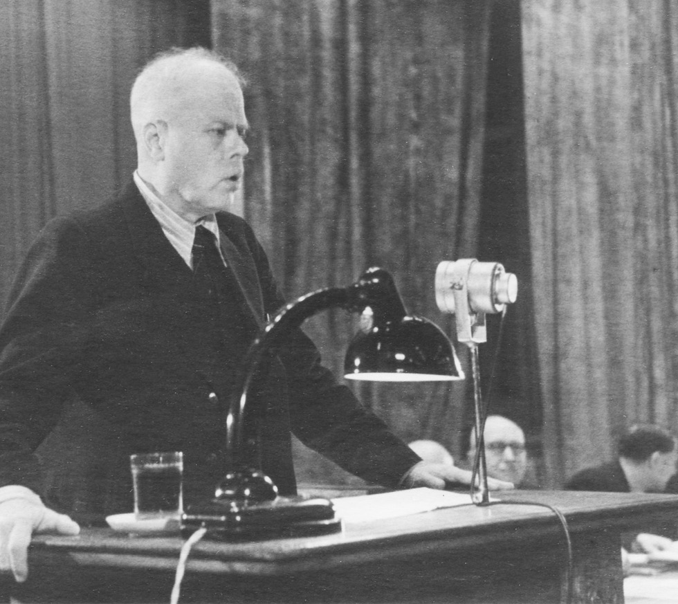 Fig. 1. Anichkov speaking at a meeting of the Leningrad Society of Physiologists, Biochemists, and Pharmacologists (1970)