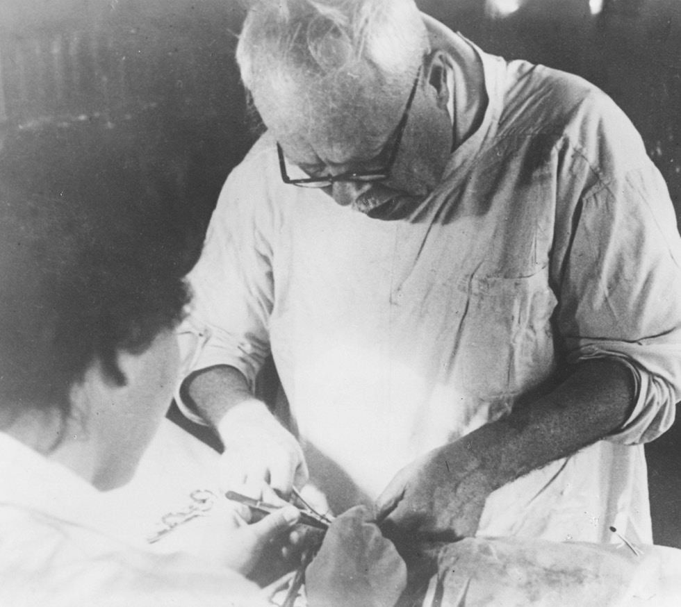 Fig. 2. S.V. Anichkov performing surgery (1972)