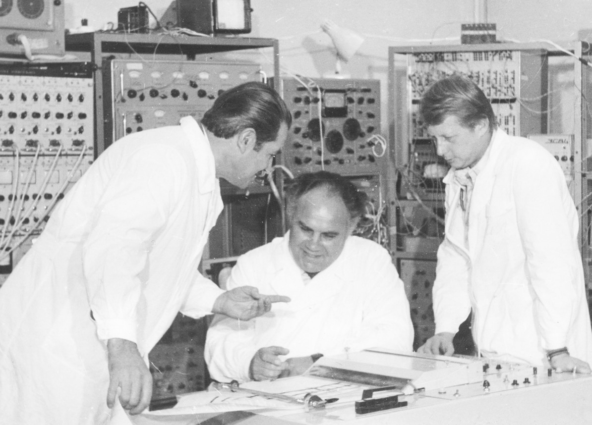 Рис. 5. Сотрудники отдела Ю.С. Бородкин (в центре), Н.А. Лосев (слева) и С.Е. Шелемеха (1979)