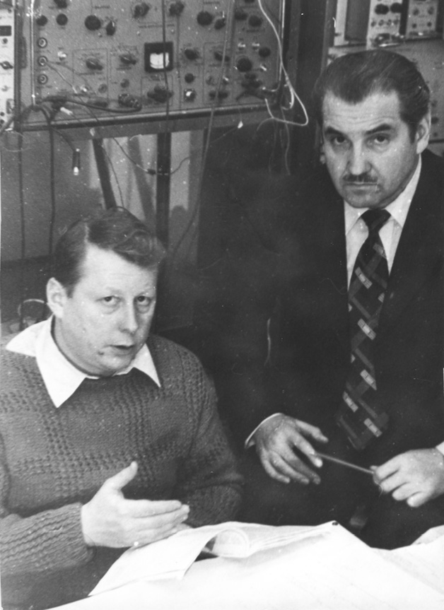 Fig. 6. In the electrophysiological laboratory, N.A. Losev (on the right) and S.E. Shelemekha (1979)