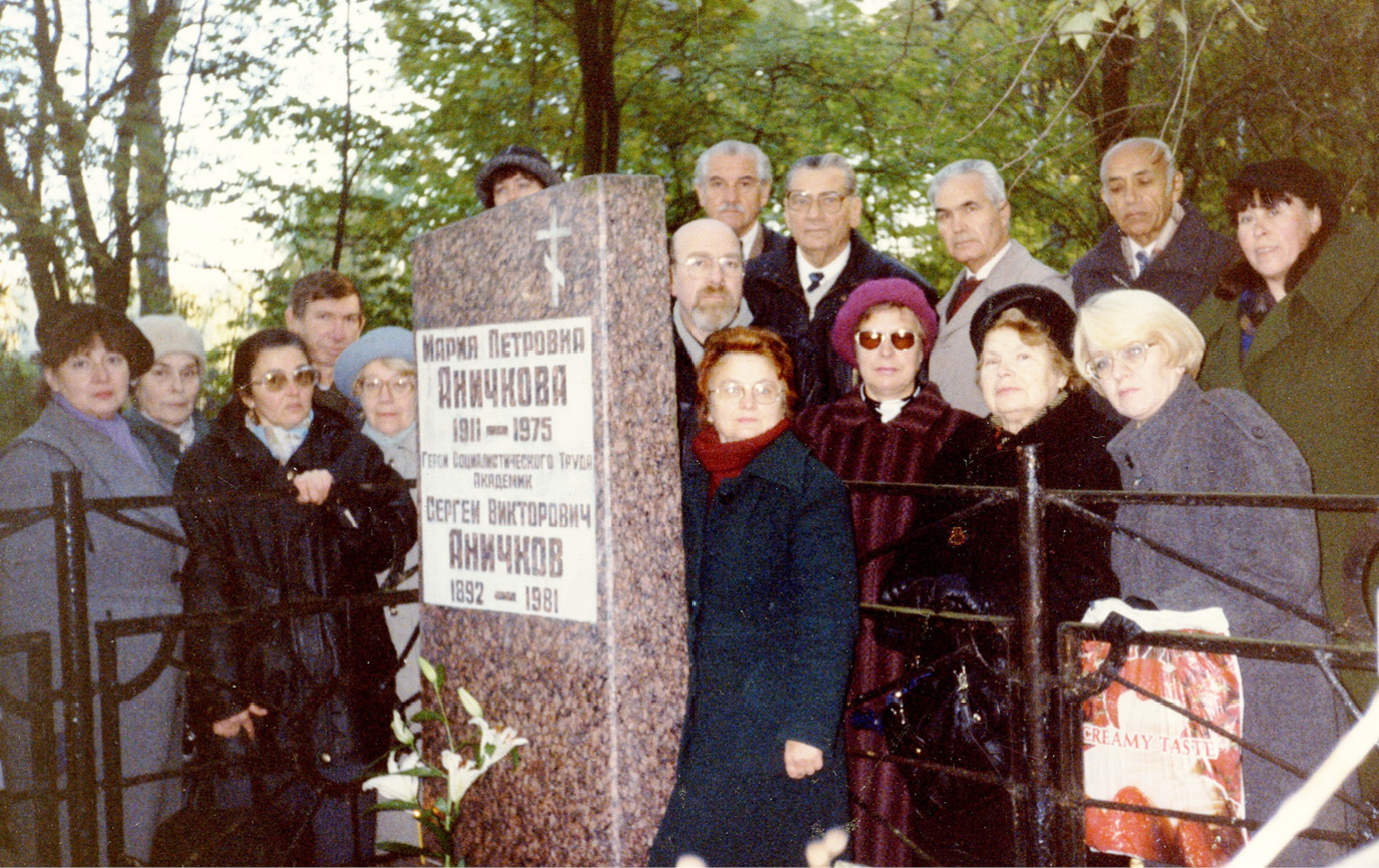 Научная школа — не только научное направление, изучение методов и методологии исследований, это знание истоков, кем и что было сделано до тебя. Это знание позволяет выбирать свое направление и нести новое знание следующим поколениям. Без прошлого нет будущего. 8 октября — день тезоименитства С.В. Аничкова — мы считаем днем отдела. В этот день сотрудники отдела уже более 30 лет посещают Богословское кладбище, где похоронен С.В. Аничков (рис. 12), и проводят встречи в его память (рис. 13).