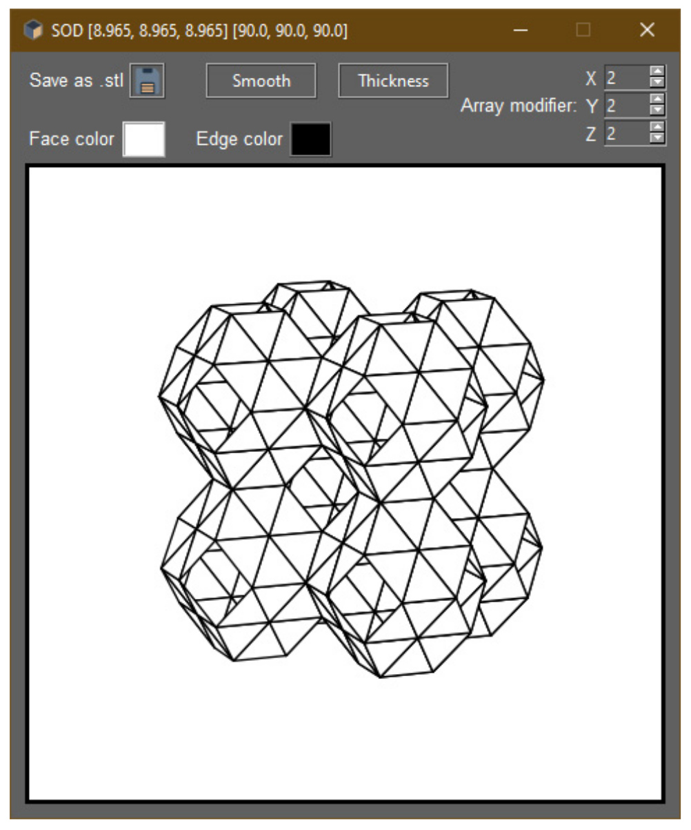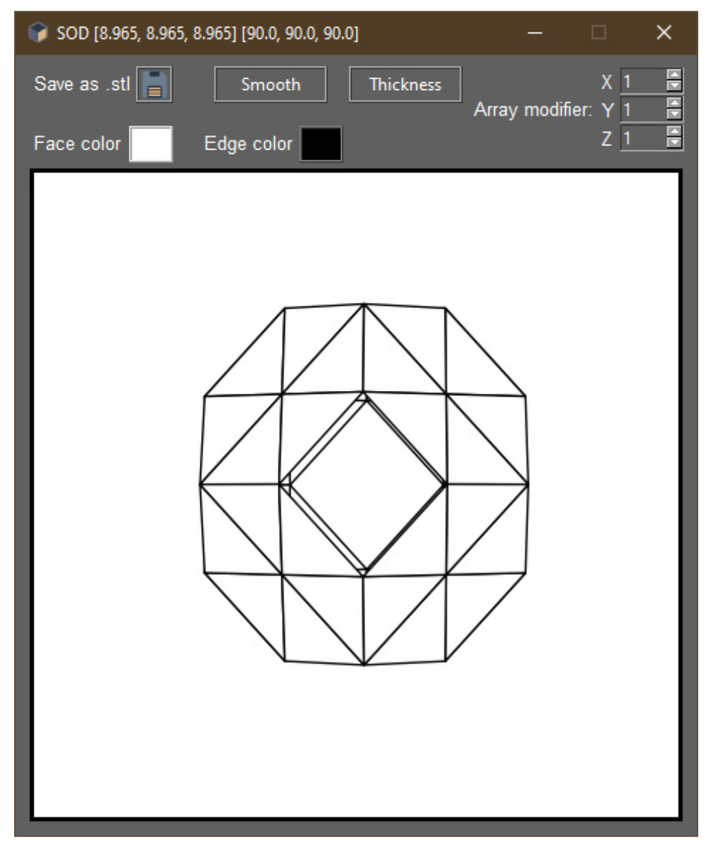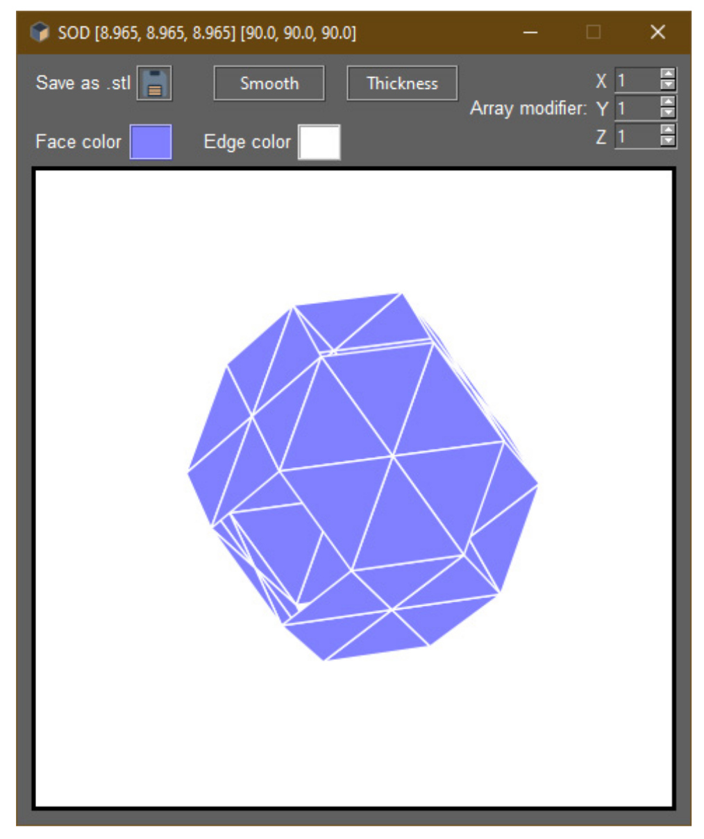 На основе полученных данных, разработанное приложение строит трёхмерную модель каркаса, например, содалита (SOD), как показано на рис. 1.