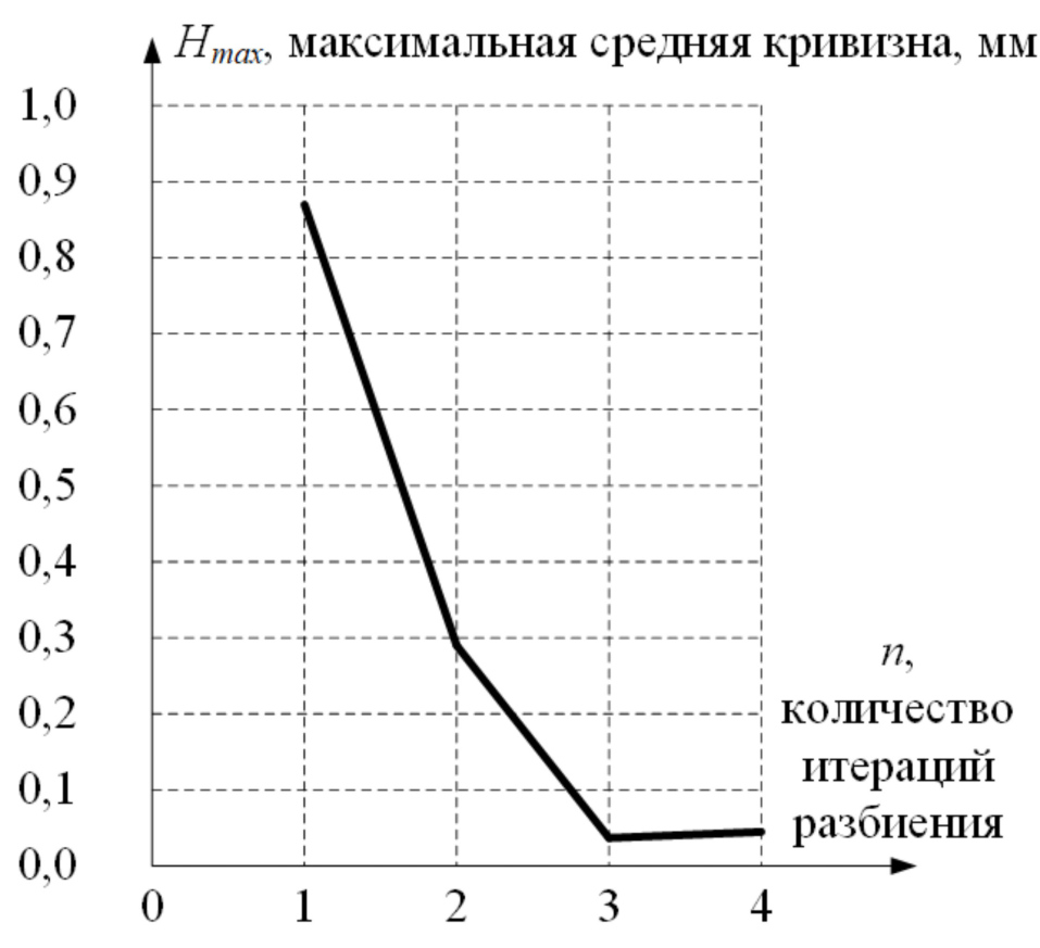 Рис. 8. График расчета максимальной средней кривизны для поверхности, полученной из каркаса SODн