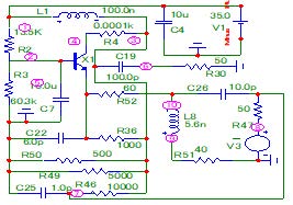 Рис. 11. Эквивалентная схема (а), узкополосного усилителя (рис. 9), соответствующего первой структурной схеме (рис. 1, а). АЧХ- и ФЧХ-усилители, полученные в системе OrCad, показаны на рис. 12