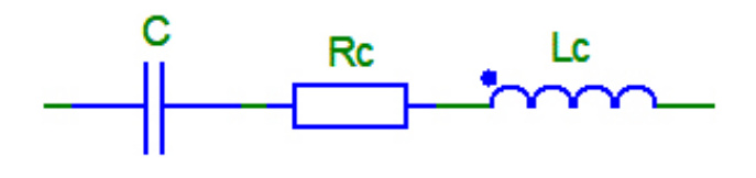 В [5; 6] были проведены измерения модуля и фазы полного (комплексного) сопротивления отечественных алюминиевых оксидно-электролитических, танталовых оксидно-полупроводниковых, танталовых объемно пористых конденсаторов и зарубежных алюминиевых оксидно-электролитических конденсаторов в широком диапазоне частот от 10 Гц до 1 МГц. По результатам измерений были составлены схемы замещения конденсаторов. Схемы замещения конденсаторов получились как простейший последовательный RLC-контур (рис. 1), так и более сложный – последовательно-параллельный контур (рис. 2).