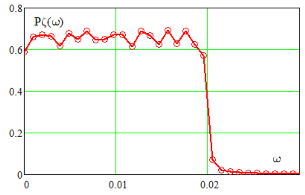 Fig. 9. Center of the spectral line of the FM signal (4)