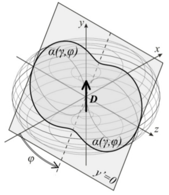 Рис. 3. Диполь D и его диаграмма направленности в трех измерениях