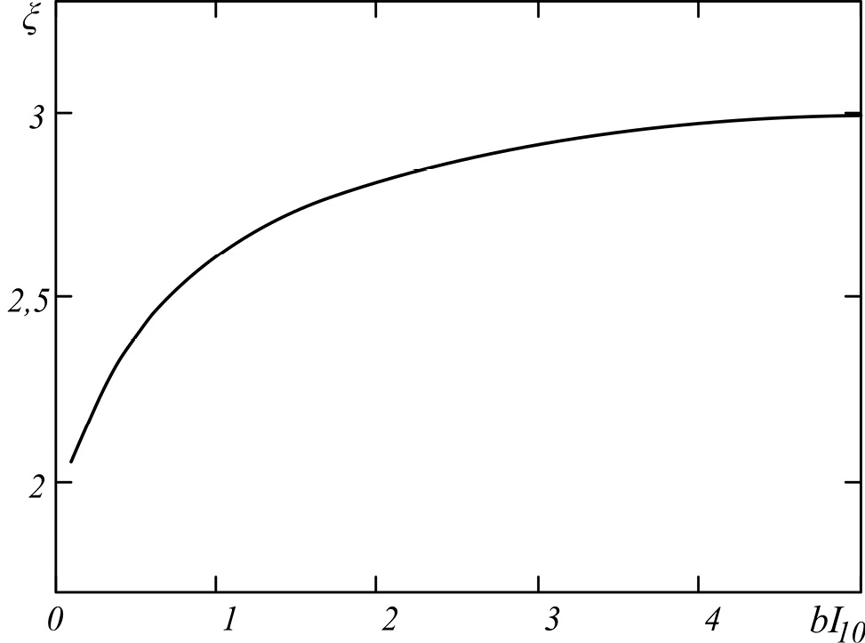 is the absorption coefficient; is the wave number; ω is the cyclic frequency, n0 is the average value of the refractive index; is the temperature change due to the release of heat when absorbing radiation; and b is a parameter characterizing the resonant nonlinearity.