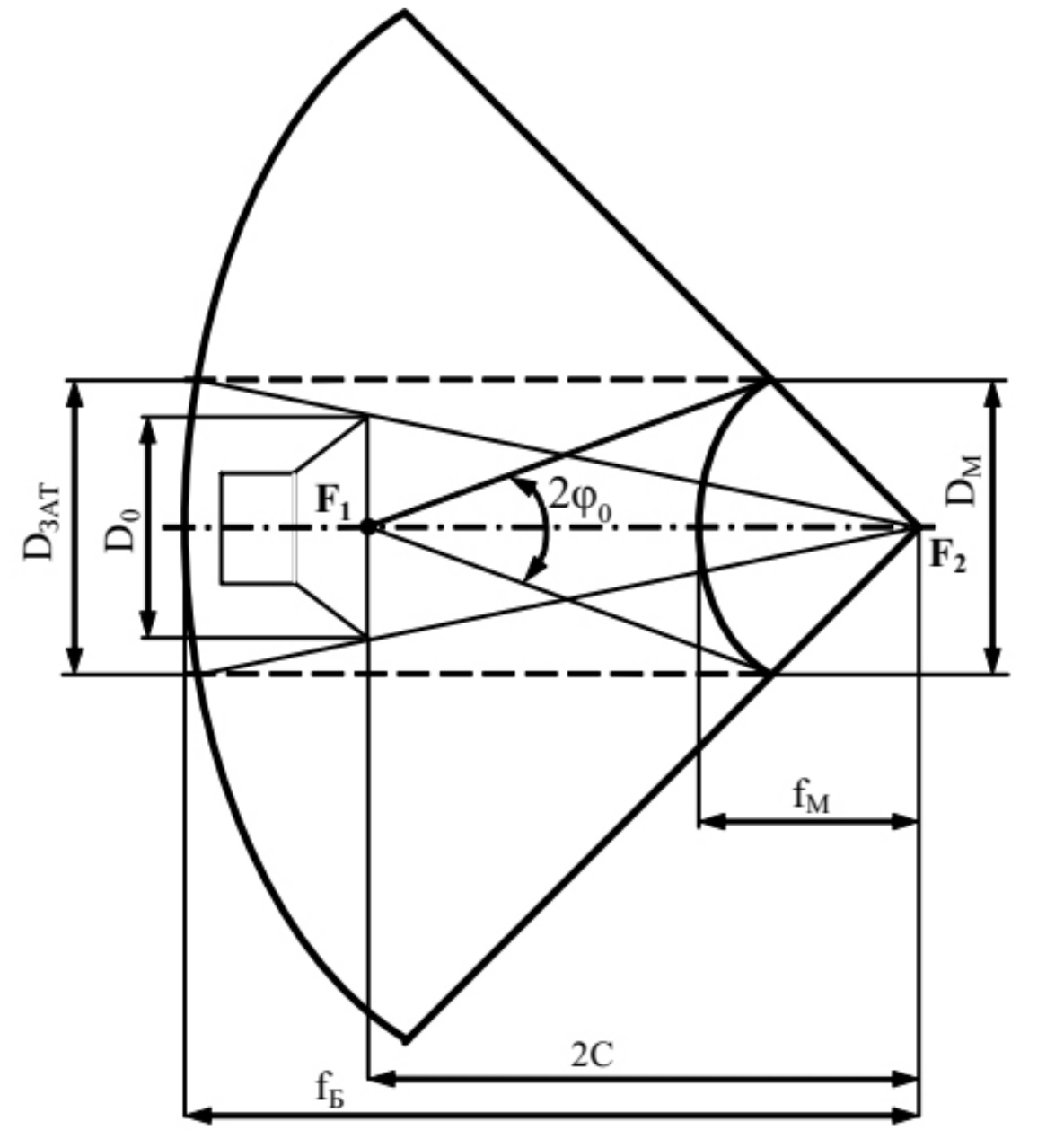 Рис. 4. Основные геометрические параметры антенны Кассегрена