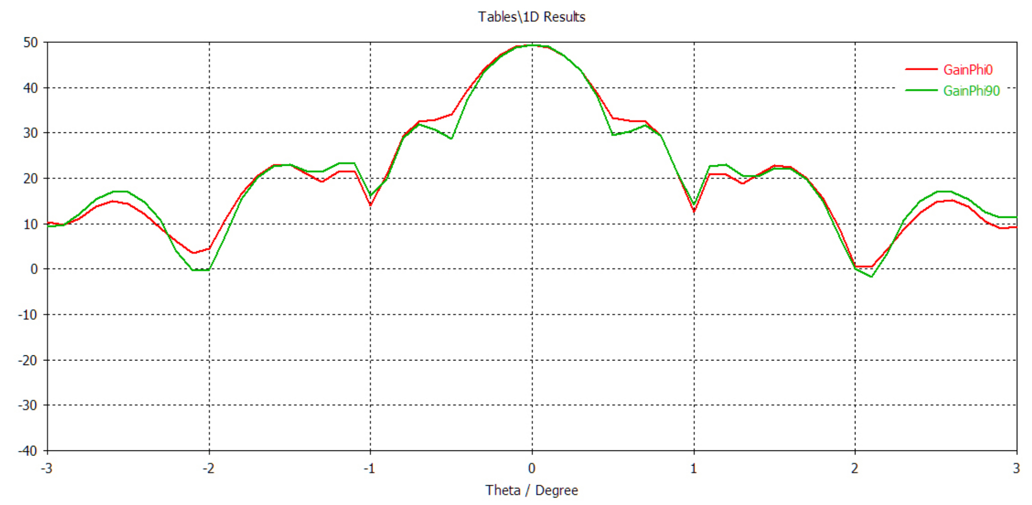 Рис. 5. Диаграмма направленности антенны Кассегрена на частоте 220 ГГц