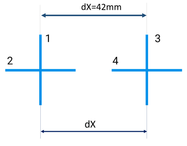 Fig. 1. Antenna array consisting of two cross-dipole elements with vertical and horizontal polarization (numbers indicate port numbering)