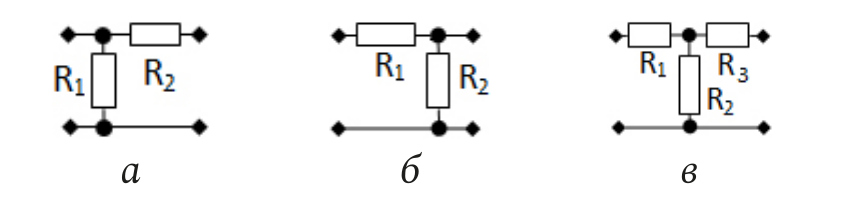 Обратное Г-образное соединение двух сопротивлений (рис. 3, б):