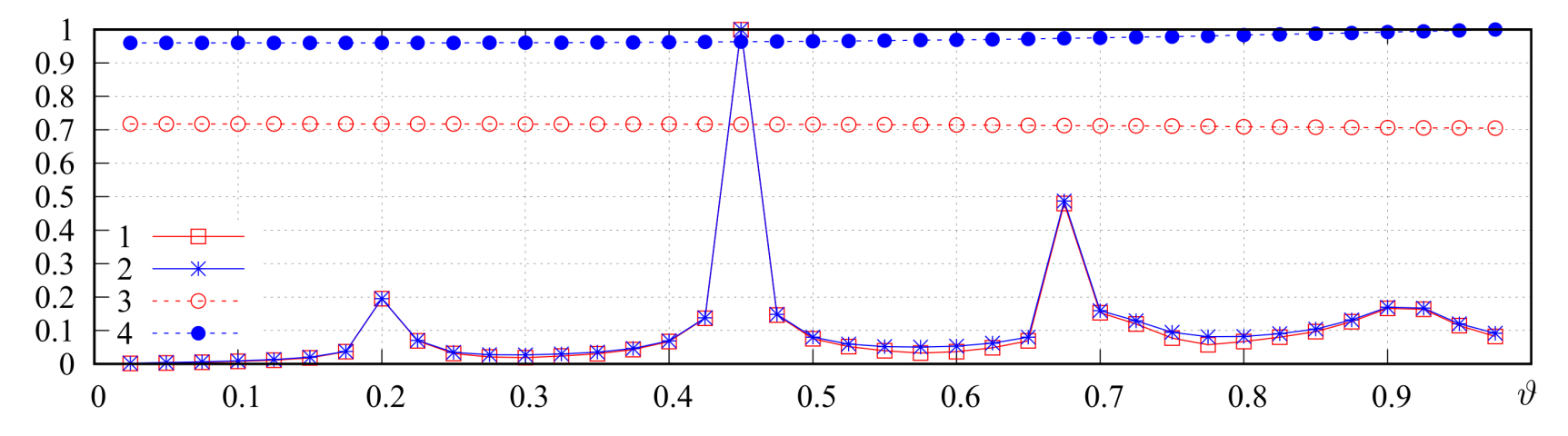 Fig. 8. Dependencies (curve 1), (curve 2), (curve 3) and (curve 4) from