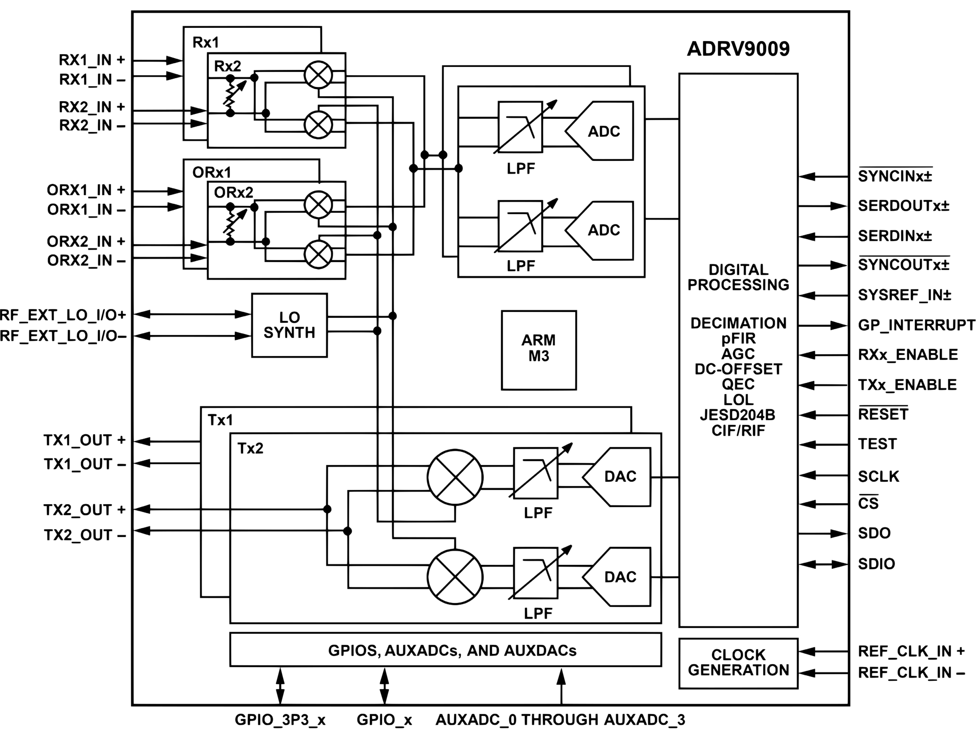 Fig. 8. Block diagram of the ADRV9009 transceiver