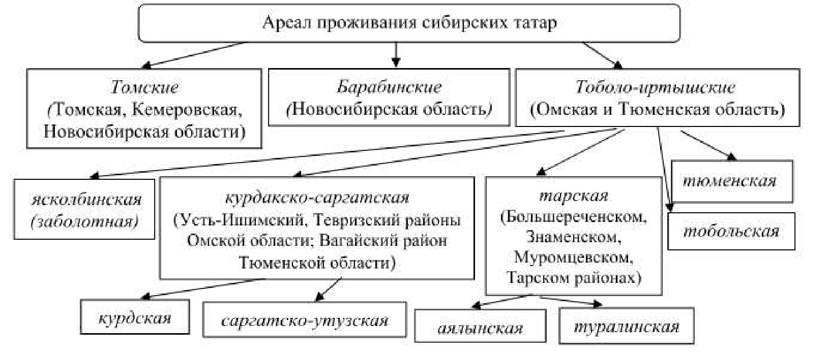 Сибирские татары. Более 50 тыс. татар проживает в Омской области – это потомки этносов 3 основных групп: местные сибирские татары (выходцы из районов Поволжья и Приуралья); казанские татары, мишары, кряшены и другие группы европейских татар; астраханские и крымские татары (немногочисленные) (рис. 1).