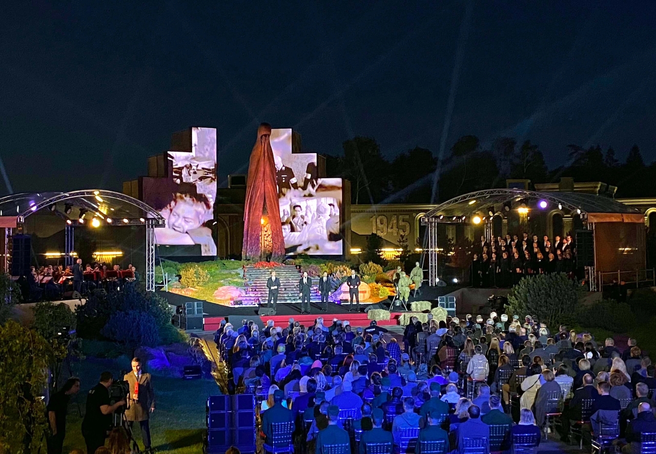 Автор статьи выделяет скульптуры российского скульптора бурятского происхождения Даши Намдакова, работающего в символической манере с образами легенд и мифов народов евразийского пространства. Тема материнства в творчестве художника занимает особое место. Скульптуры Даши Намдакова можно встретить по всему постсоветскому пространству. Его скульптурная композиция «Матерям победителей» в парке «Патриот» в Москве является своего рода венцом храмового комплекса парка, возведена в 2020г. Образ матери «скорбящей» в мантии, полы которой сливаются с землей и оберегают горящую свечу. Парк «Патриот» и его храмовый комплекс являются теперь уже традиционным местом проведения мероприятий в День памяти и скорби (рис. 3). Интерес представляет скульптура Даши Намдакова «Золотая Шория», возведенная в России в г. Таштагол Кемеровской области в 2010г.
