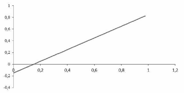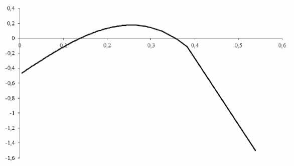- уровень долговой нагрузки – влияние нелинейно (см. рис. 5) с изменением направления, что также соответствует экономическому смыслу данного показателя: до определенного уровня заемные средства увеличивают инвестиционные возможности организации, оказывая положительное влияние на прибыль, однако при достижении границ инвестиционных возможностей страховая организация начинает неэффективно использовать займы, не связывая их с генерацией дополнительной прибыли, покрывающей расходы на их обслуживание;
