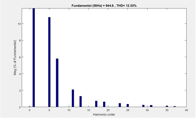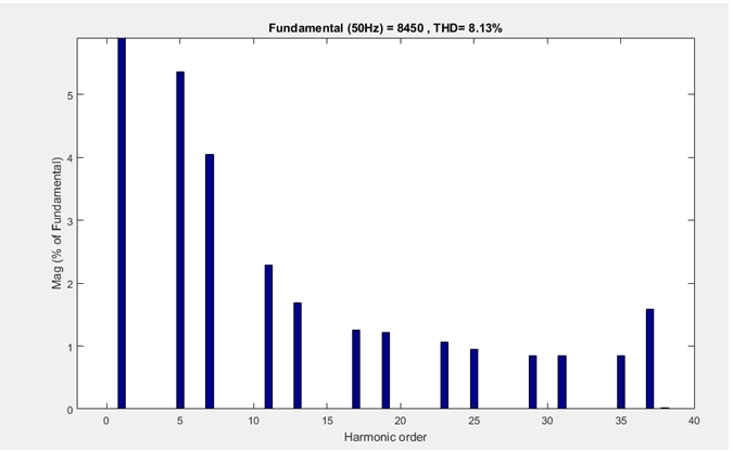 Рисунок 4 – Амплитудный спектр высших гармонических составляющих тока