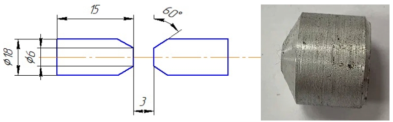 Для исследования были выбраны сплав АМг2 (ГОСТ 4784-97), порошок титана ТПП-7 (ТУ1715-449-05785388), порошок углерода П-701 (ГОСТ 7585-86), присадочная проволока 5356 (ГОСТ Р53689-2009 ИСО 544:2003). Заготовки перед сваркой обезжиривали ацетоном, затем поверхности стыка подвергали шлифовке. Угол основного металла при проведении эксперимента составляет 65˚ (рисунок 1), а метод сварки представляет собой газовую дуговую сварку вольфрамовым электродом (TIG) с использованием сварочного аппарата Everlast PowerTIG 210EXT. В качестве защитного газа используется Ar чистотой 99,999%. Сварочный ток составляет около 70 А, а скорость подачи газа 14 л/мин. После сварки образцы охлаждаются естественным образом, а затем зоны сварки подвергаются неразрушающему контролю. Образцы для измерения твердости также вырезаются из свариваемых пластин в поперечном направлении. Твердость полученных экспериментальных образцов определяли на твердомере ТШ-2М по ГОСТ 9012-59 (рисунок 2). Изготовление металлографических шлифов проводили на шлифовально-полировальной машине ПОЛИЛАБ П12МА с приставкой для работы в автоматическом режиме. Для выявления микроструктуры проводили травление образцов раствором 50% HF+50% HNO3 в течение 10-15 сек. Металлографический анализ осуществляли на растровом электронном микроскопе Jeol JSM-6390A. Фазовый состав анализировался методом рентгенофазового анализа (РФА). Съемка рентгеновских спектров – на автоматизированном дифрактометре марки ARL X’trA (Thermo Scientific) с использованием Cu-излучения при непрерывном сканировании в интервале углов 2θ от 20 до 80 град со скоростью 2 град/мин. Анализ дифрактограмм проводился с использованием программы «HighScore Plus».