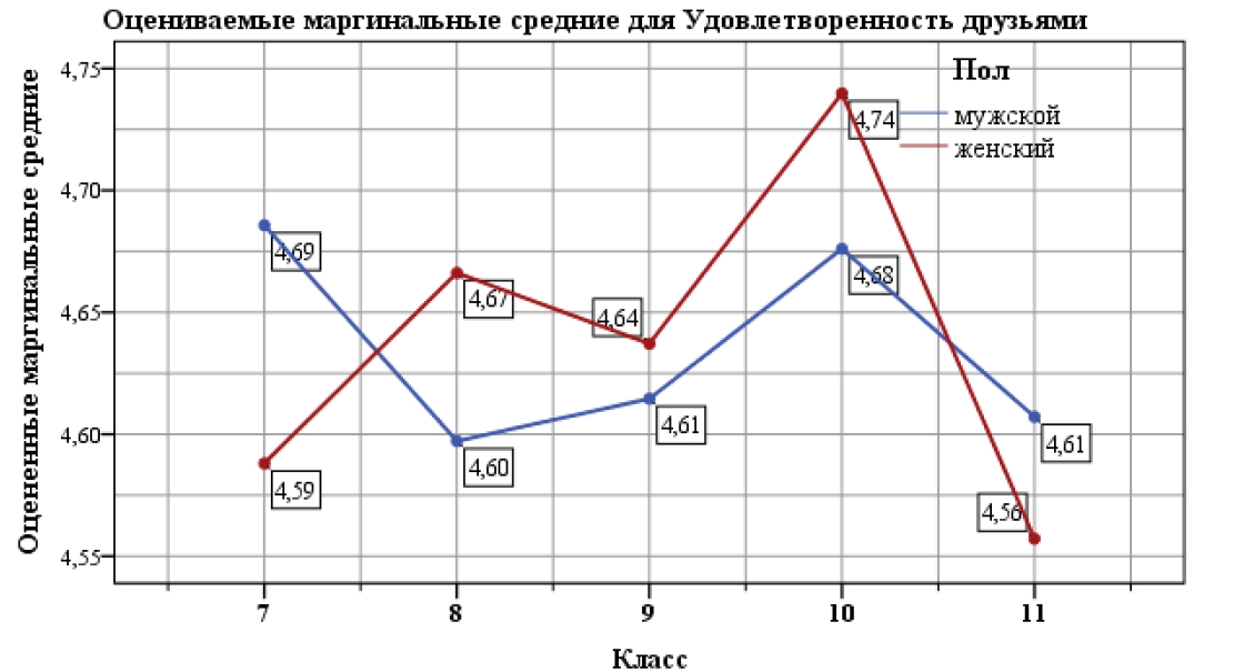 Удовлетворенность друзьями | 10,934 | ,001 |