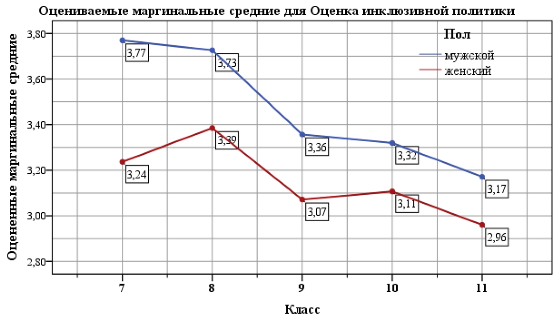 Рисунок 6 – Средние значения по фактору «Оценка инклюзивной политики» (мужской – 390, женский – 417)
