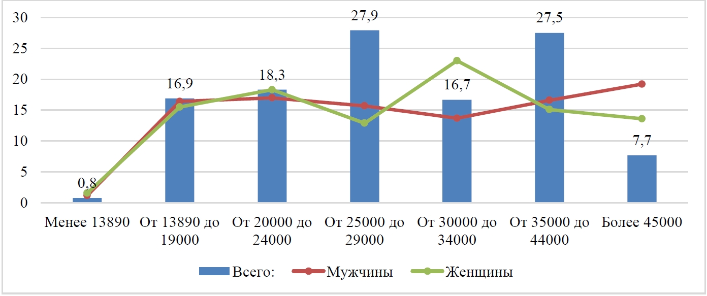Стоит отметить, мужчины получают доход выше, чем большинство женщин. Более высокие доходы обеспечиваются в крупных городах, где есть большой спрос на квалифицированную рабочую силу.