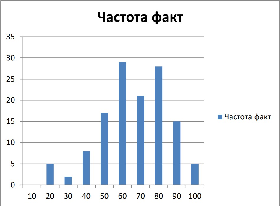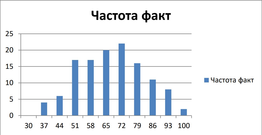 Рисунок 1 – Фактическое распределение результатов тестирования