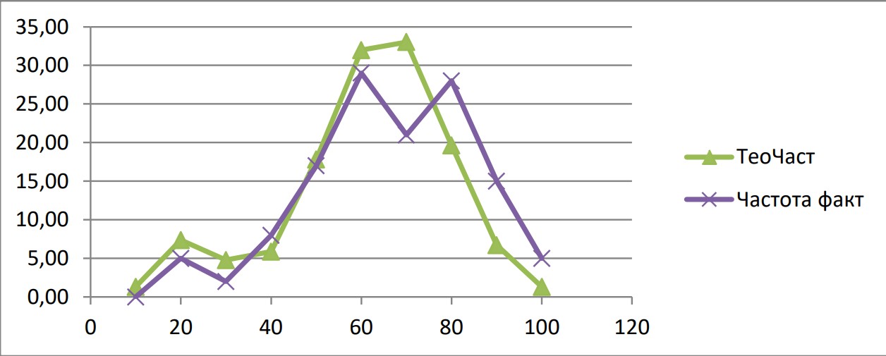 Рисунок 2 – Теоретические и фактические частоты