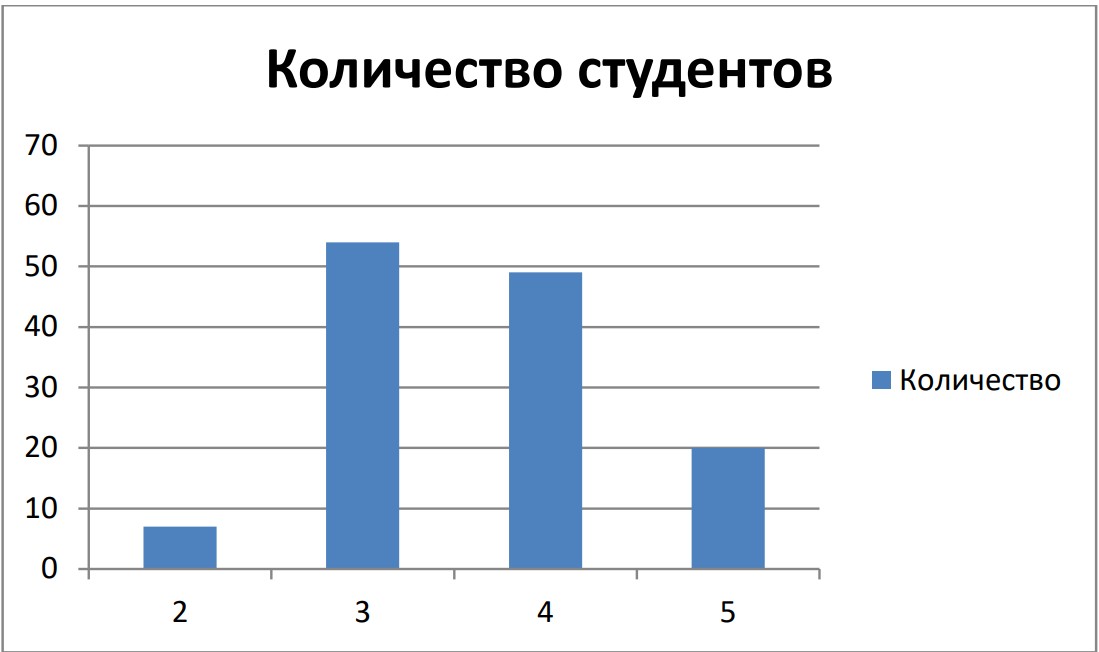 В итоге количество студентов, получивших отметку «2», оказалось равным 7. Распределение остальных студентов представлено на Рис. 4, а в Таб. 2 – значения соответствующих статистик.