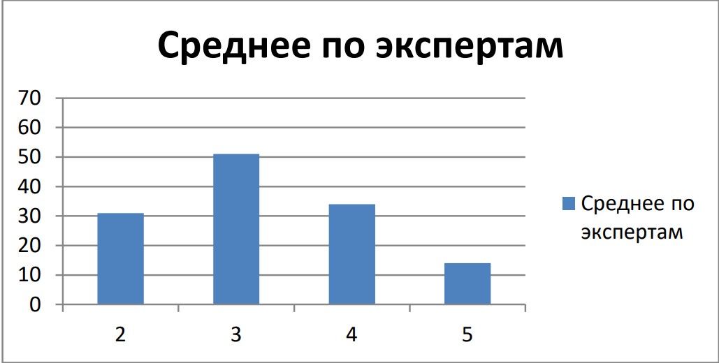 Все распределения студентов по отметкам, полученные с учетом мнения экспертов, включая осредненное, статистически (при 1% уровне значимости) отличаются друг от друга. И нет объективных оснований предпочесть мнение одного эксперта или выбрать осредненное.