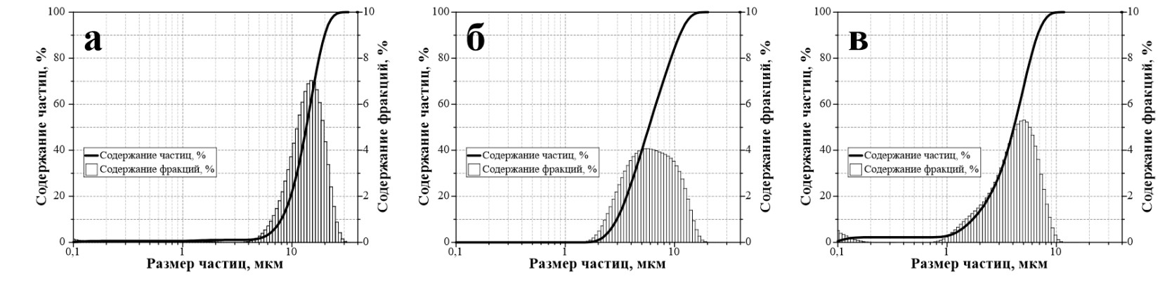 Гранулометрический состав порошков определяли на лазерном анализаторе частиц Analysette-22 NanoTec/MicroTec/XT (Fritsch, Германия). Каждый образец измерялся три раза, затем результаты усреднялись.