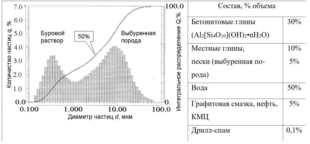 Рисунок 1 – Дисперсионный состав БШ месторождения Каменное, входящего в состав Красноленинского свода месторождений на западе Ханты-Мансийского автономного округа