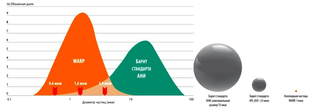 Рисунок 2 – Типичный гранулометрический состав буровых растворов WARP, производимых компанией Mi Swaco группы «Шлюмберже» (SLB: NYSE)