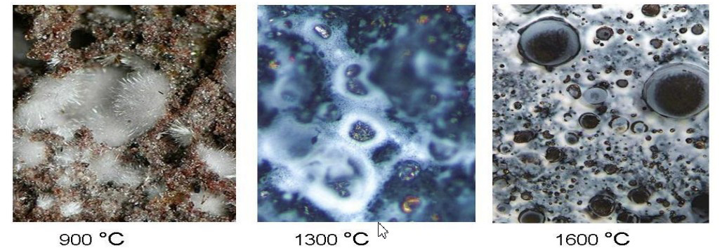 - В результате электронно-микроскопических исследований системы Al2O3 ‒ SiO2 установлено наличие трех характерных микроструктур, формирующихся по мере возрастания температуры спекания, вблизи 900 ºС, 1300 ºС и 1600 ºС соответственно. Наименьшее влияние деформационных процессов характерно для микроструктур, спеченных при 1300 ºС [19, 21].