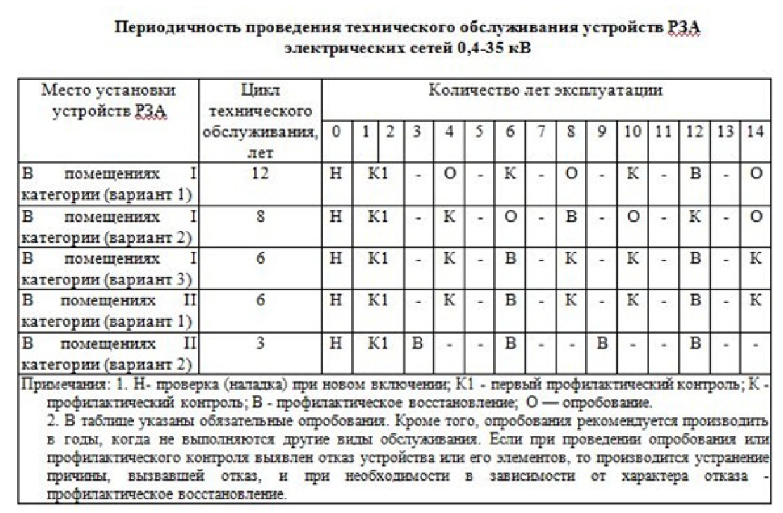 Таблица 1. Основные требования к организации работ по техническому обслуживанию и наладке устройств РЗА.