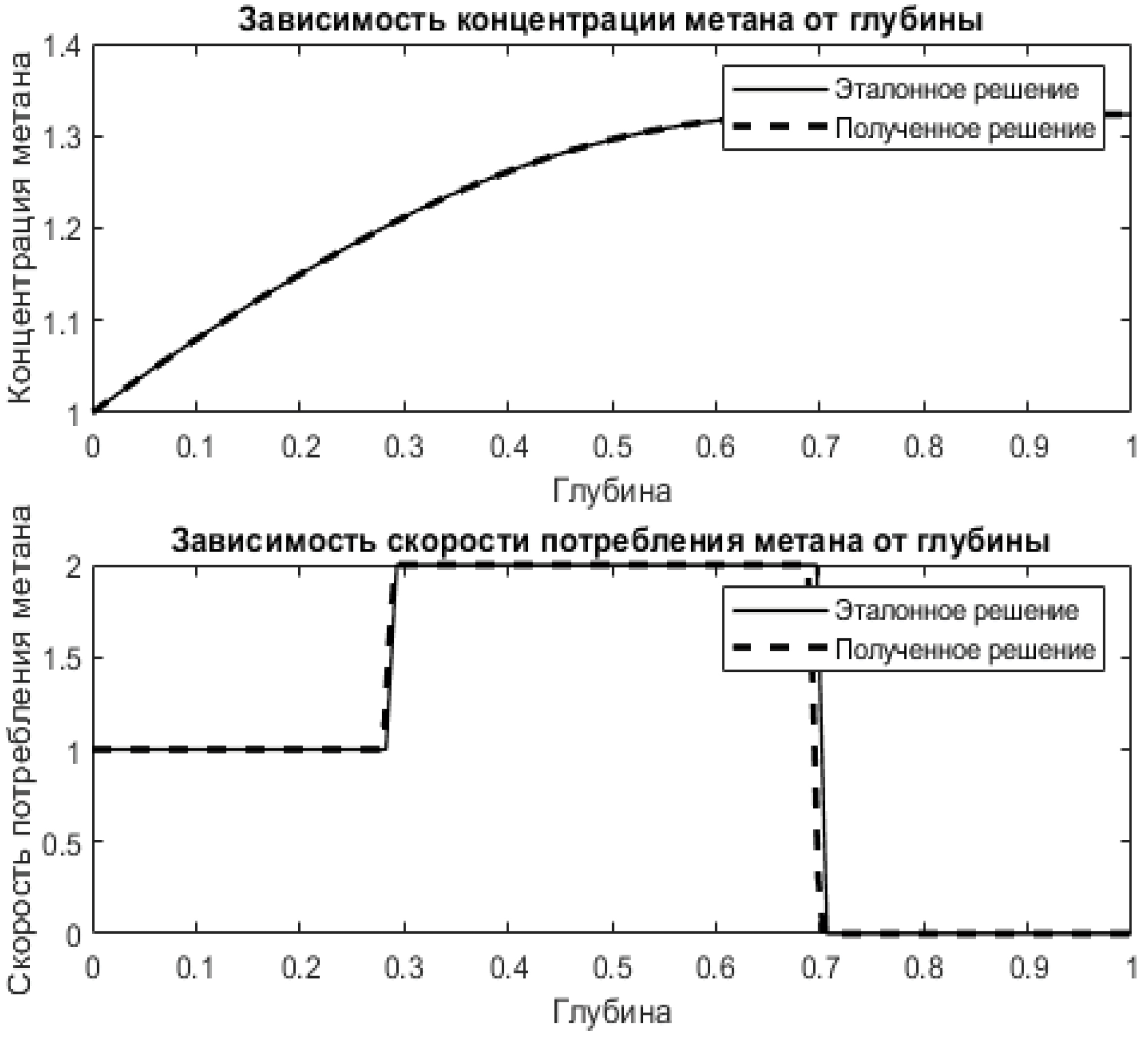 Для данного вектора скорости потребления метана были получены значения функции концентрации метана в точках, представленные на рисунке 2.