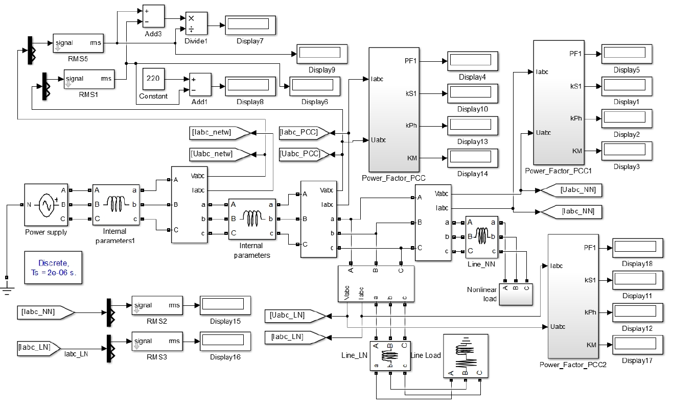 При имитационном моделировании упомянутых выше путей формирования несинусоидальных режимов были приняты следующие основные допущения и ограничения [9, 10]: