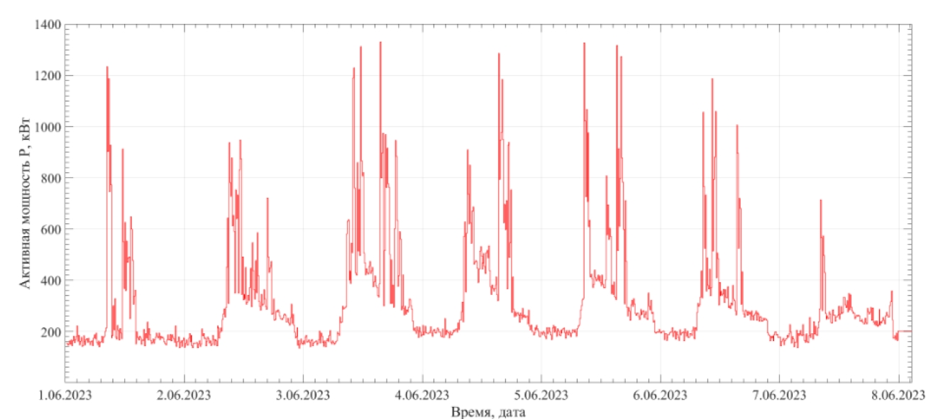 Рисунок 1 – График мощности узла нагрузок за период с 01.06.2023 по 08.06.2023
