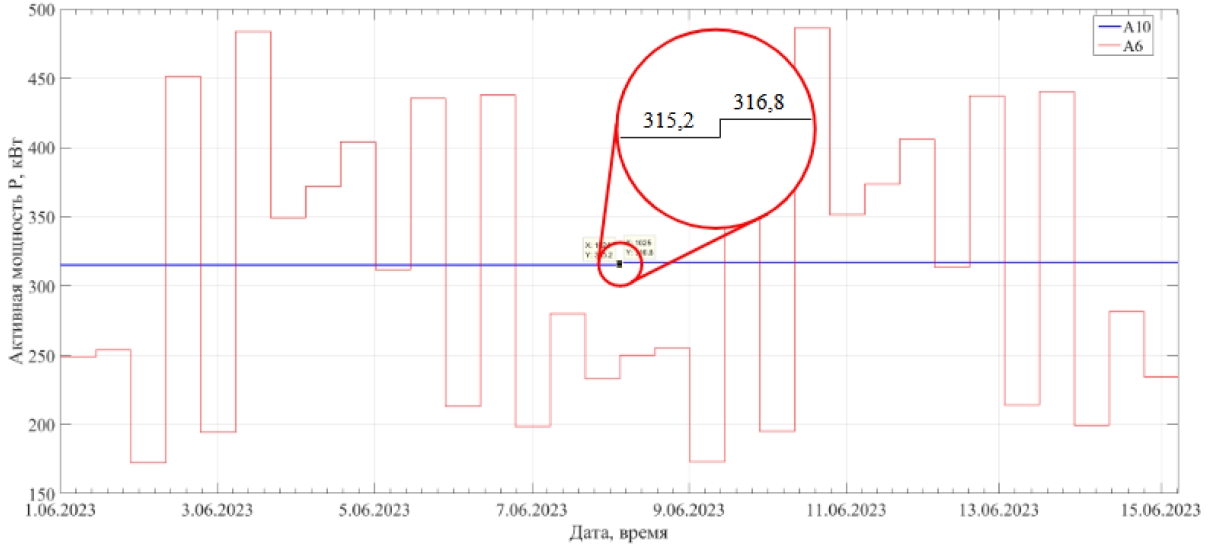 Рисунок 2 – График мощности узла нагрузок за период с 08.06.2023 по 15.06.2023
