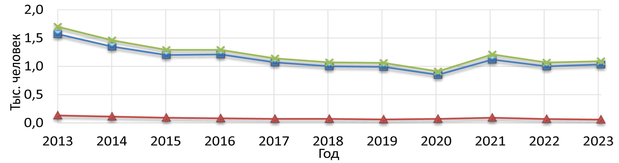 Рисунок 1. Численность пострадавших при несчастных случаях на производстве