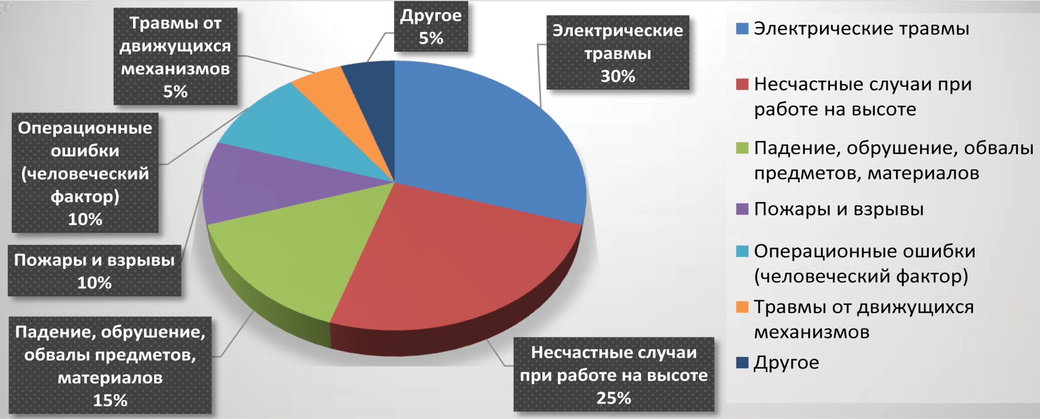 Purpose of research is to assess the state of occupational injuries at electric power facilities in order to identify the causes and factors contributing to accidents.