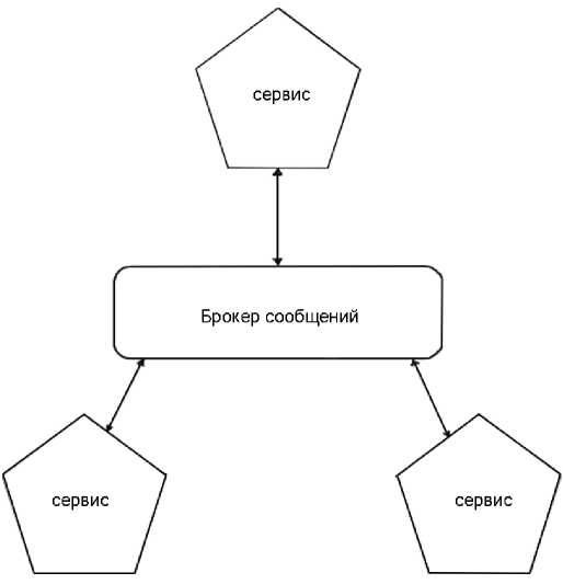 Рис. 1. Mикросервисная архитектура с брокером сообщений
